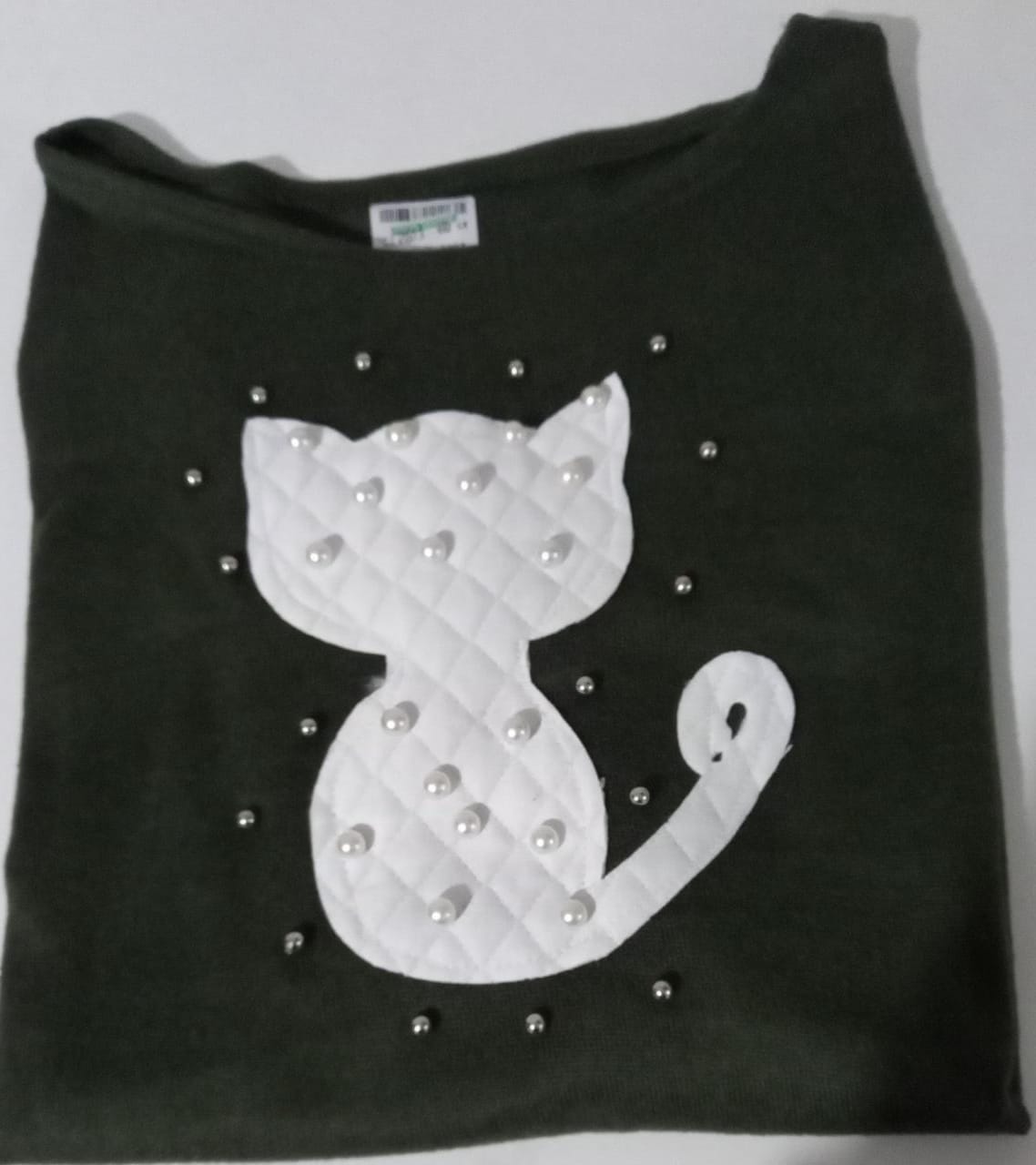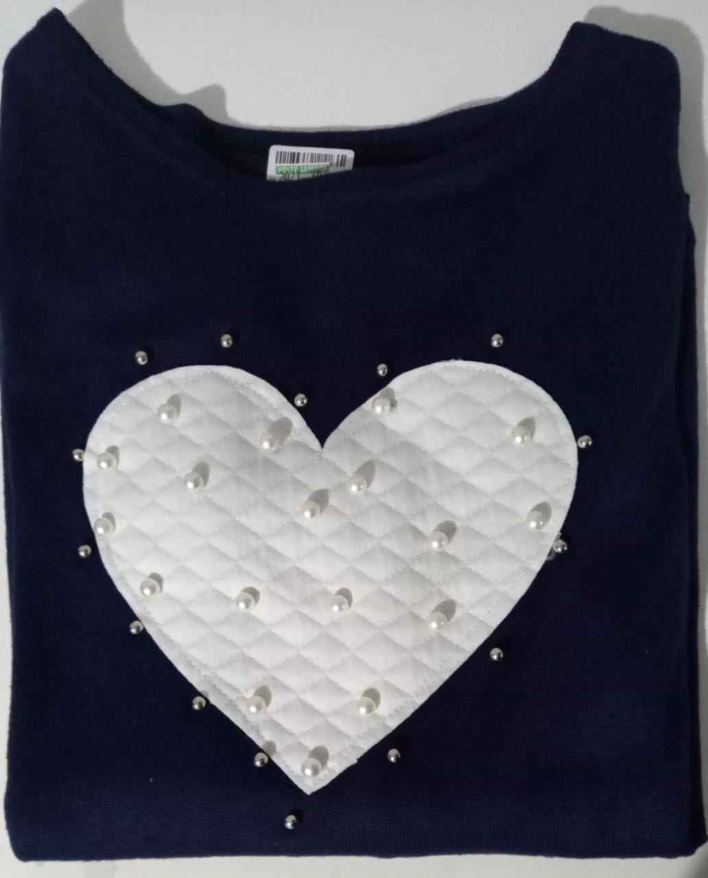 2073 Blusa Fem Lanzinha (borboleta, coração, gato) M/L com Pérola Tam único (cinza, marinho, musgo, preta, vinho)