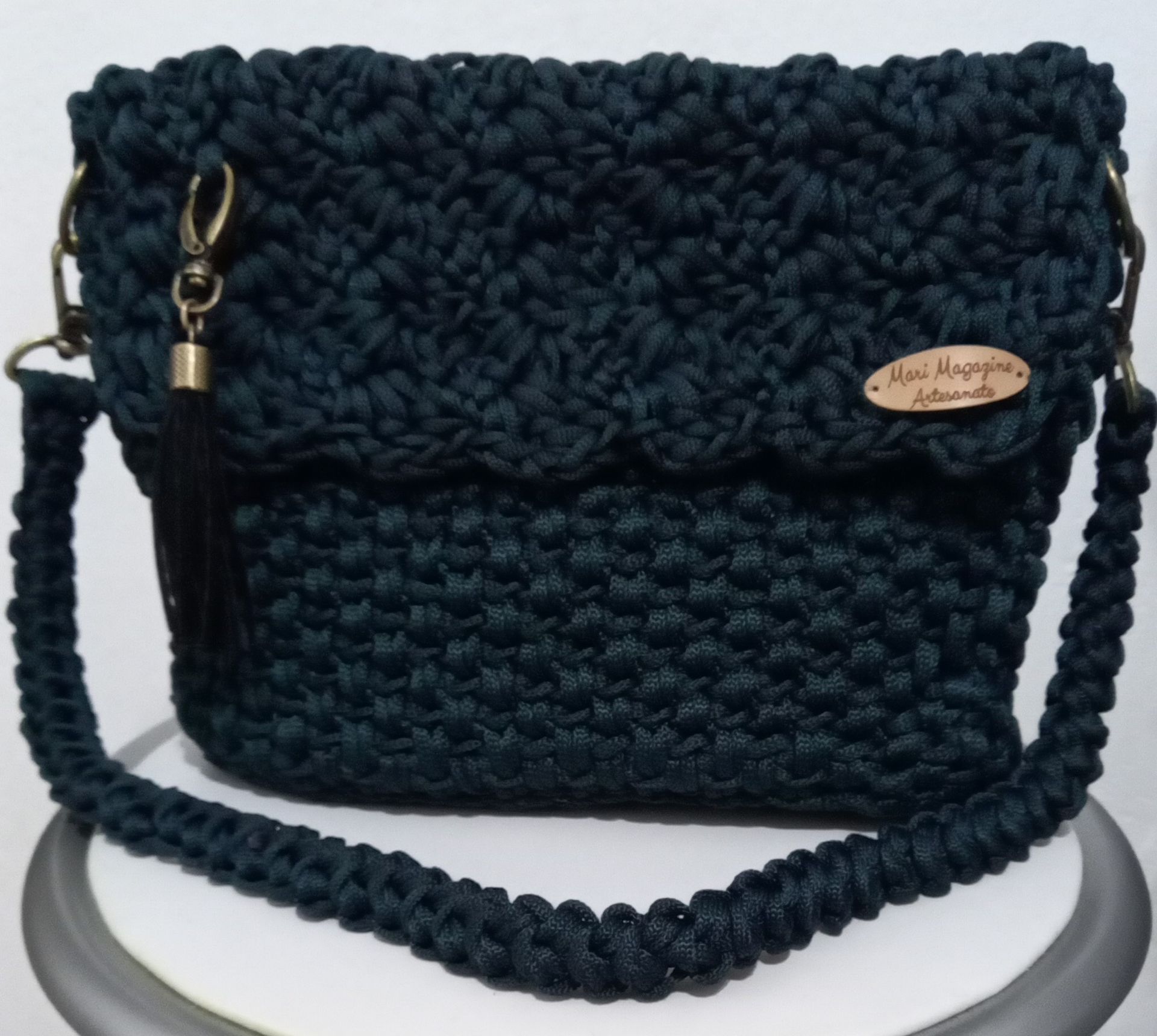 10203 Bolsa de crochê com fio náutico transversal Aprox 22 x 19 x 8 cm - Musgo