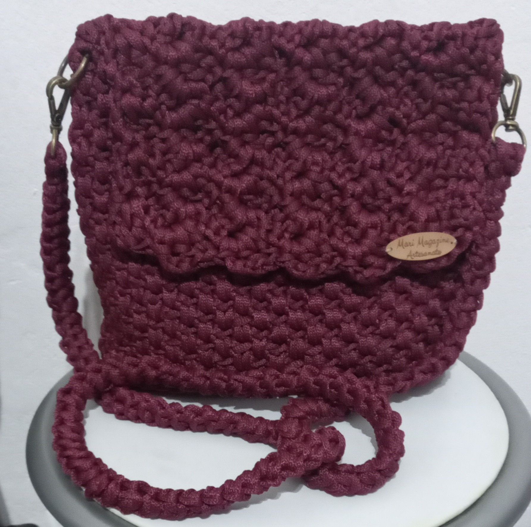 10203 Bolsa de crochê com fio náutico transversal Aprox 22 x 19 x 8 cm - vinho