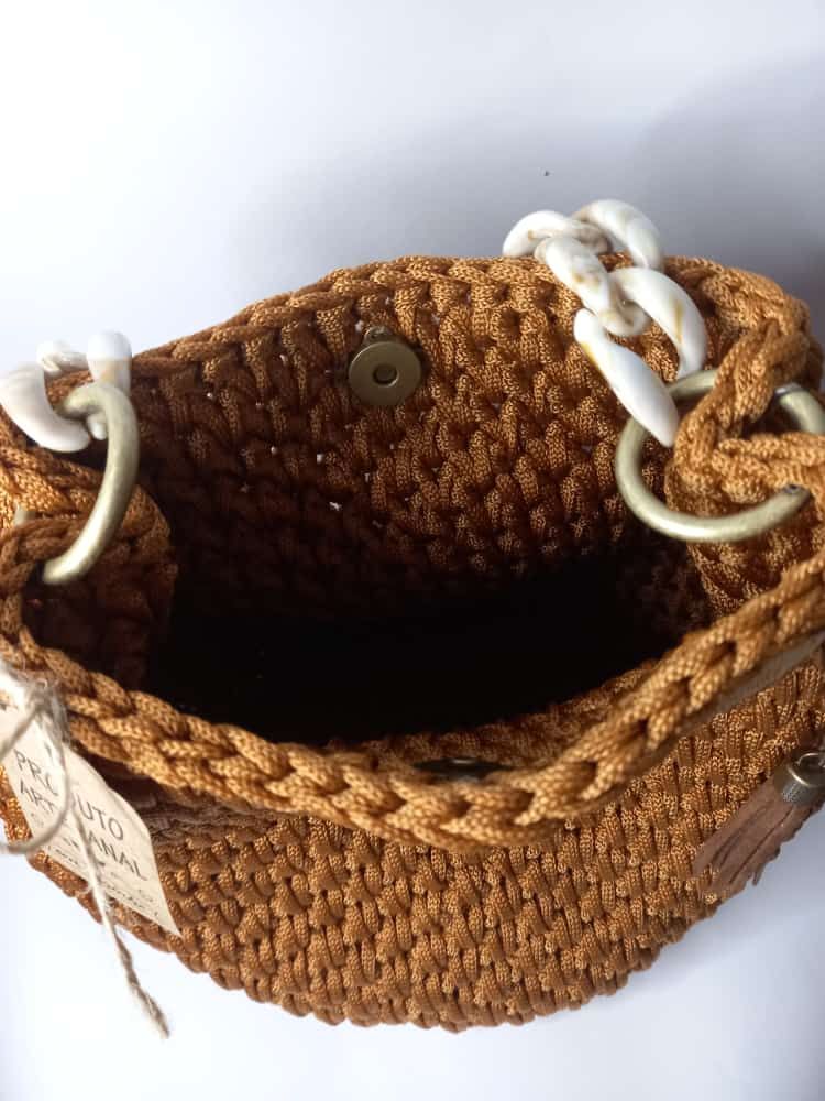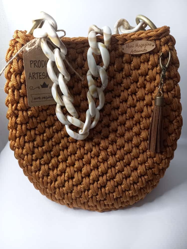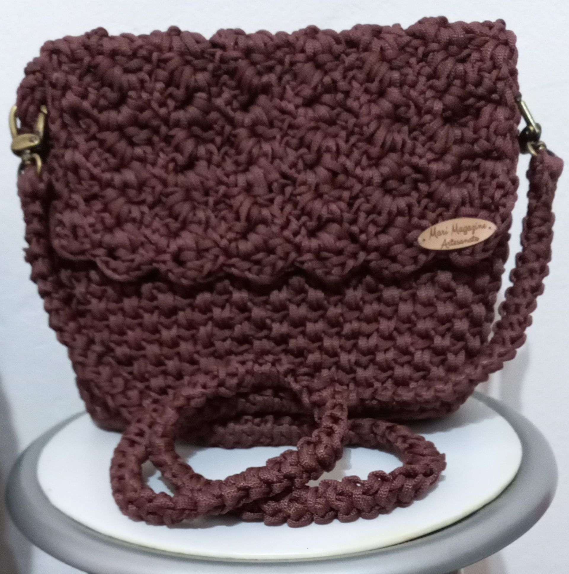 10203 Bolsa de crochê com fio náutico transversal Aprox 22 x 19 x 8 cm - Marron