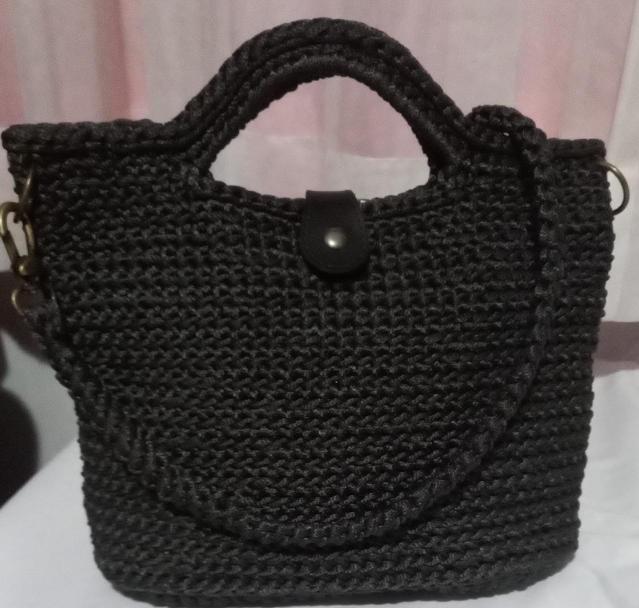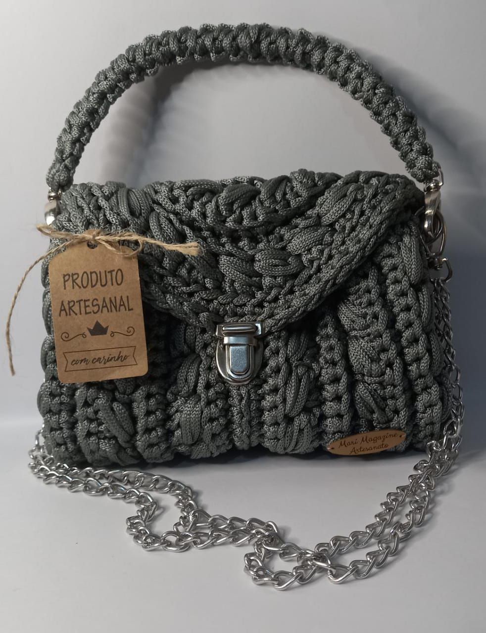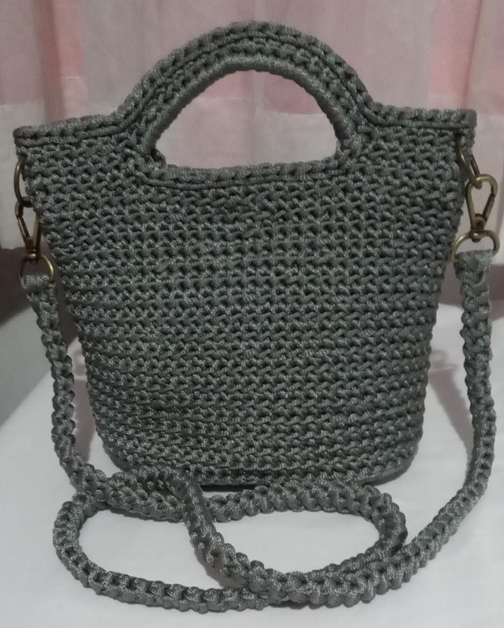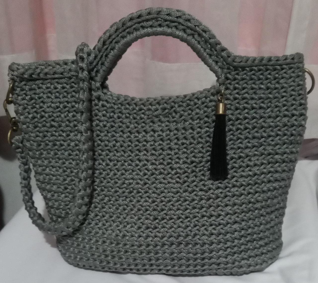 10203 Bolsa de Crochê com fio náutico transversal Aprox 22 x 19 x 8 cm - grafite