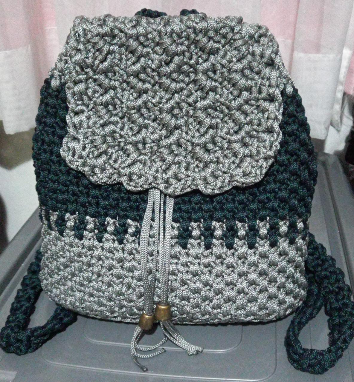 10250 Mochila de crochê com fio náutico Aprox 31 x 26 x 11 cm