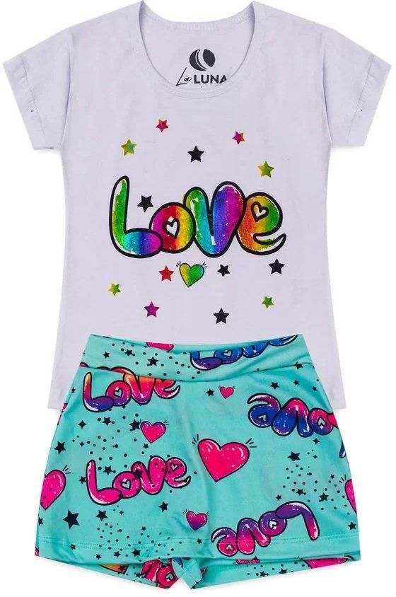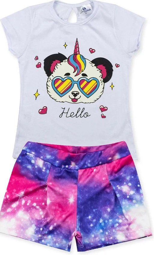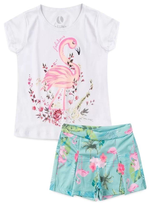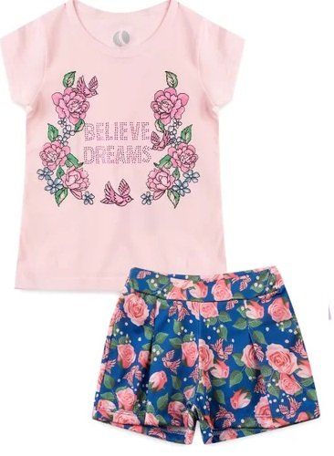 3515 Conjunto Infantil verão fem Tam 1, 2, 3, 4, 6 8 (Branco, Cinza, Off white, Rosa, Lilaz