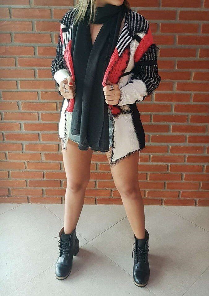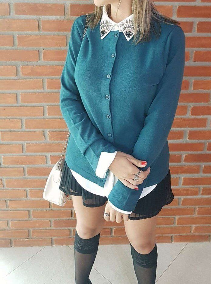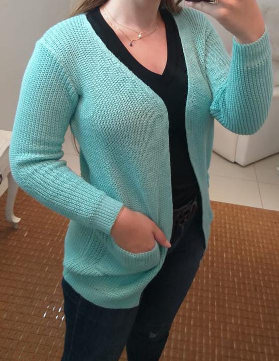 2074 Casaco Fem Tricot c/ bolso (cardigan)