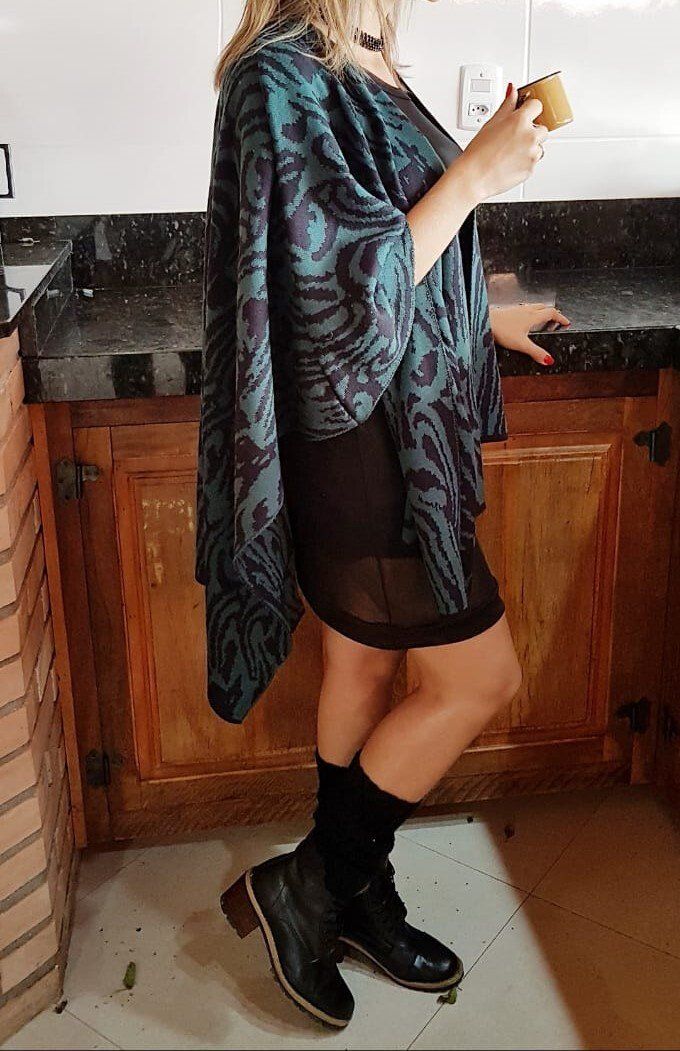 1041 Poncho Capa Jacar (cinza/preto, marrom/bege, marsala/preto, verde/preto)