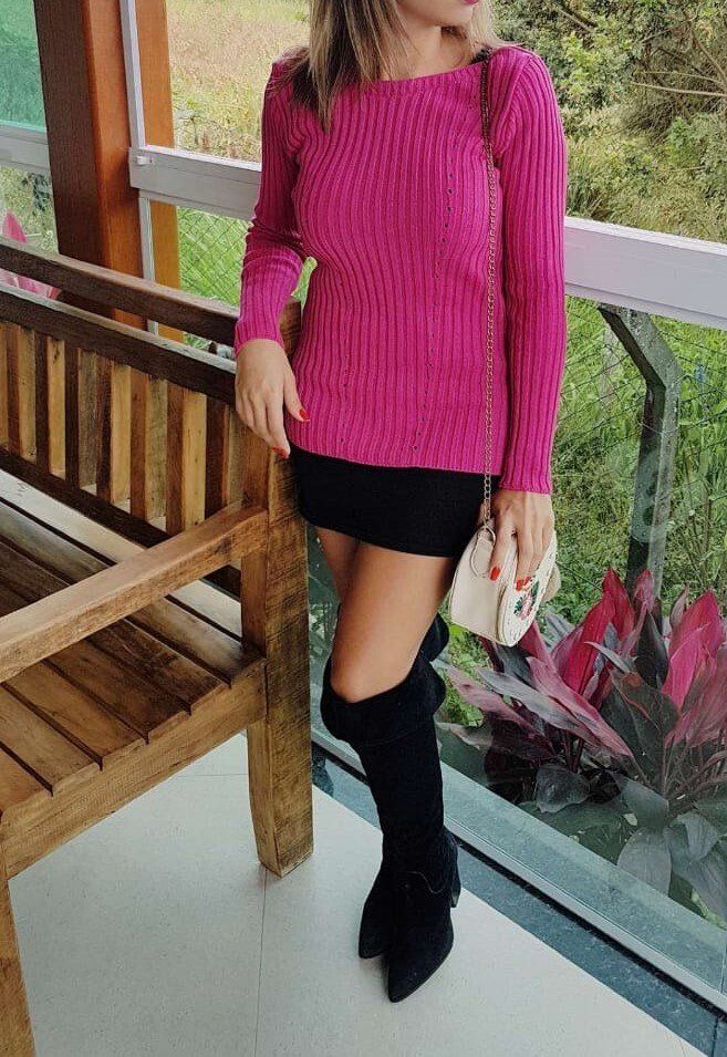 0038 Blusa em Malha Canderlaine gola alta (cinza, marsala, preta)