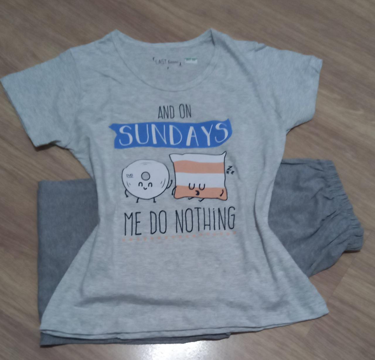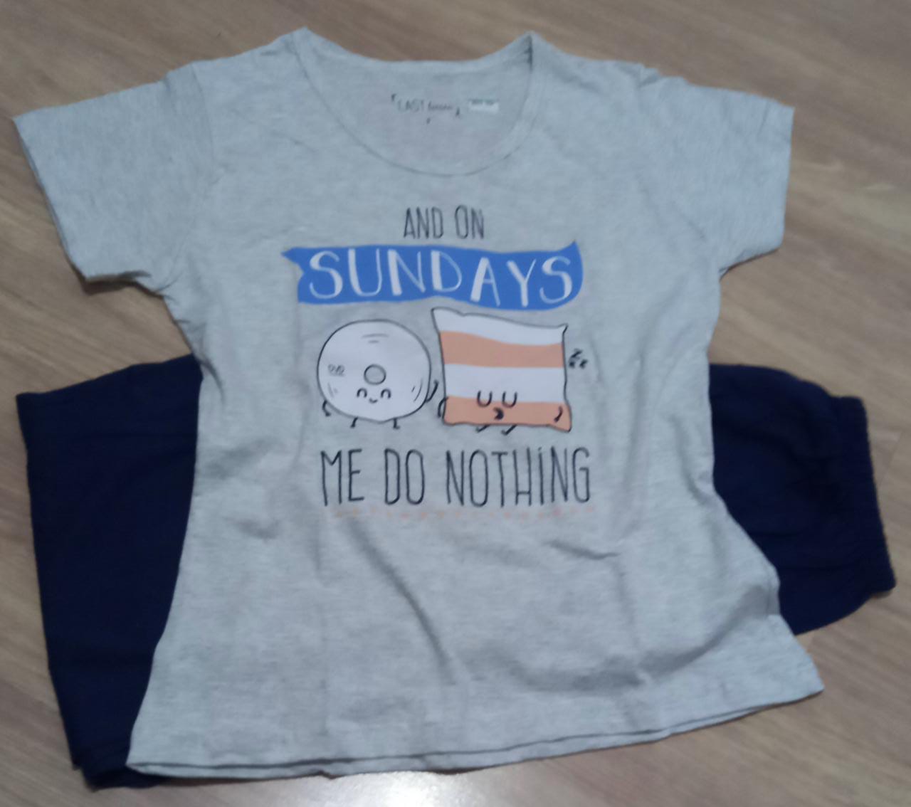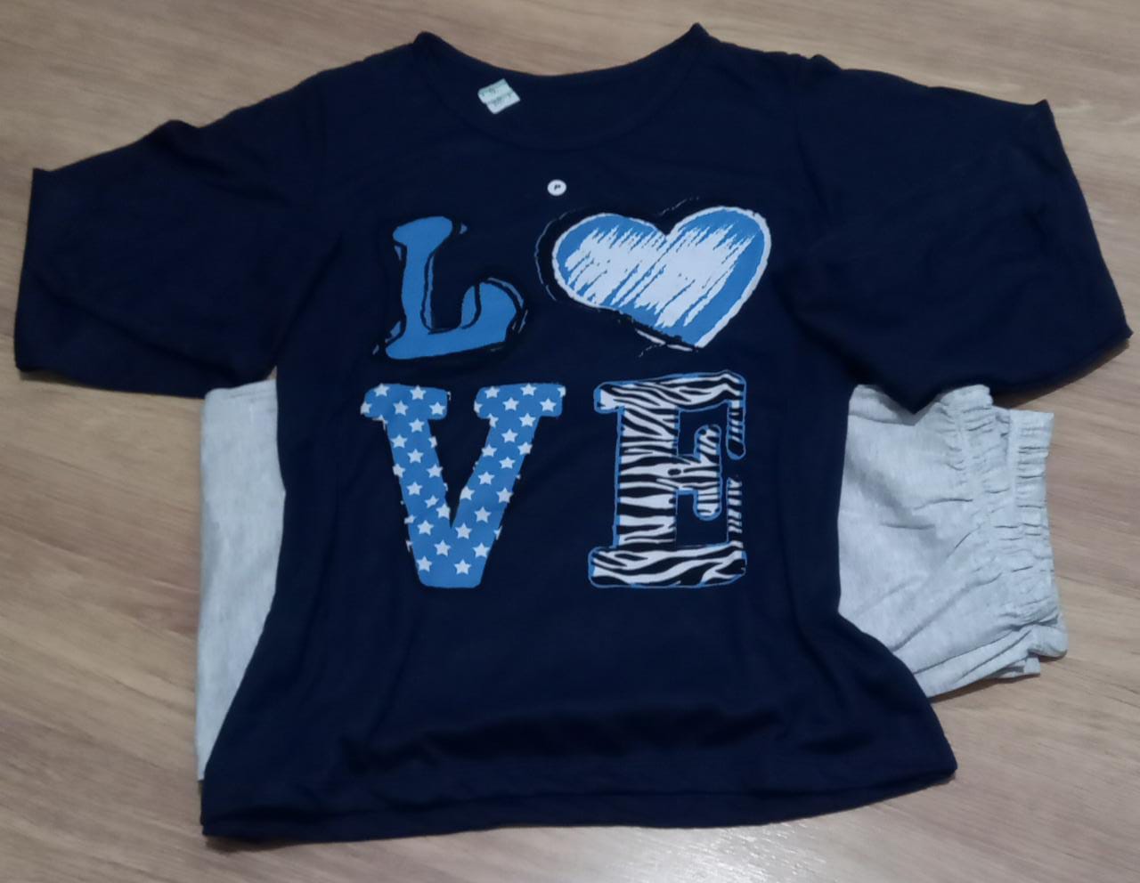 3511 Pijama Adulto Fem longo e manga curta Tam P e M (Marinho, cinza,)