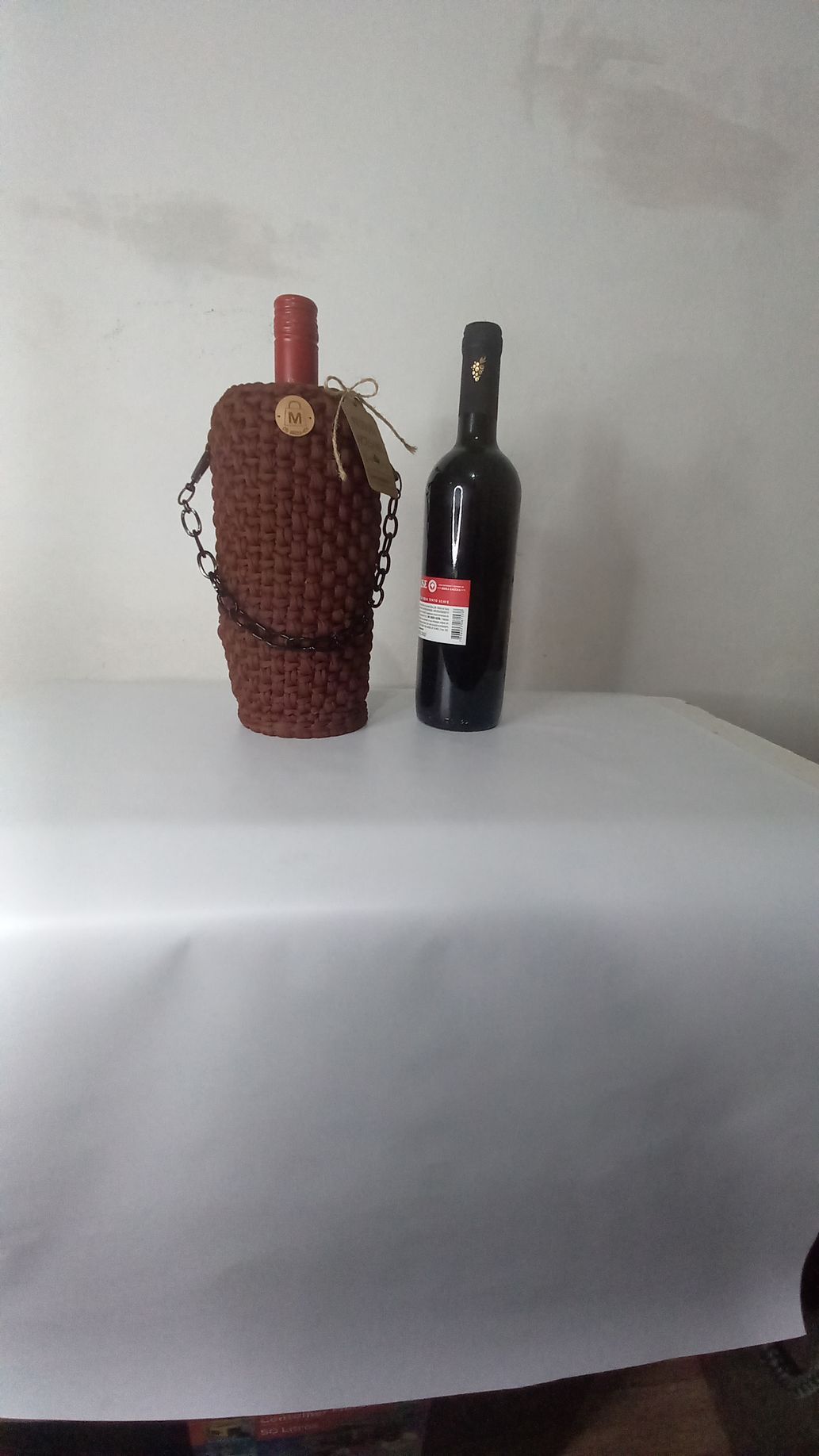 10130 Porta Garrafas fio malha e base mdf 10 x 23 aprox (marrom, marron com rosa, lilaz, marrom com capuccino)