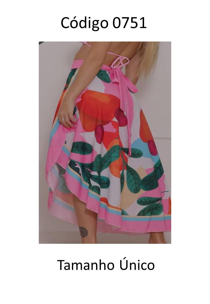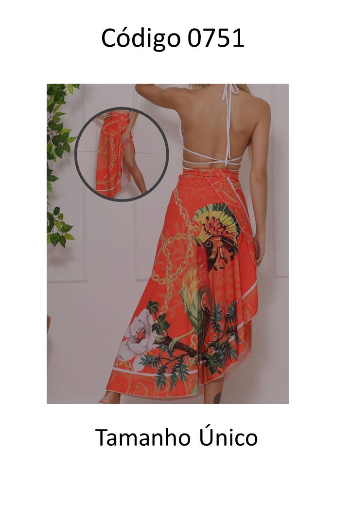 00751 - Saida Pareo longa Estampada (rosa, laranja)
